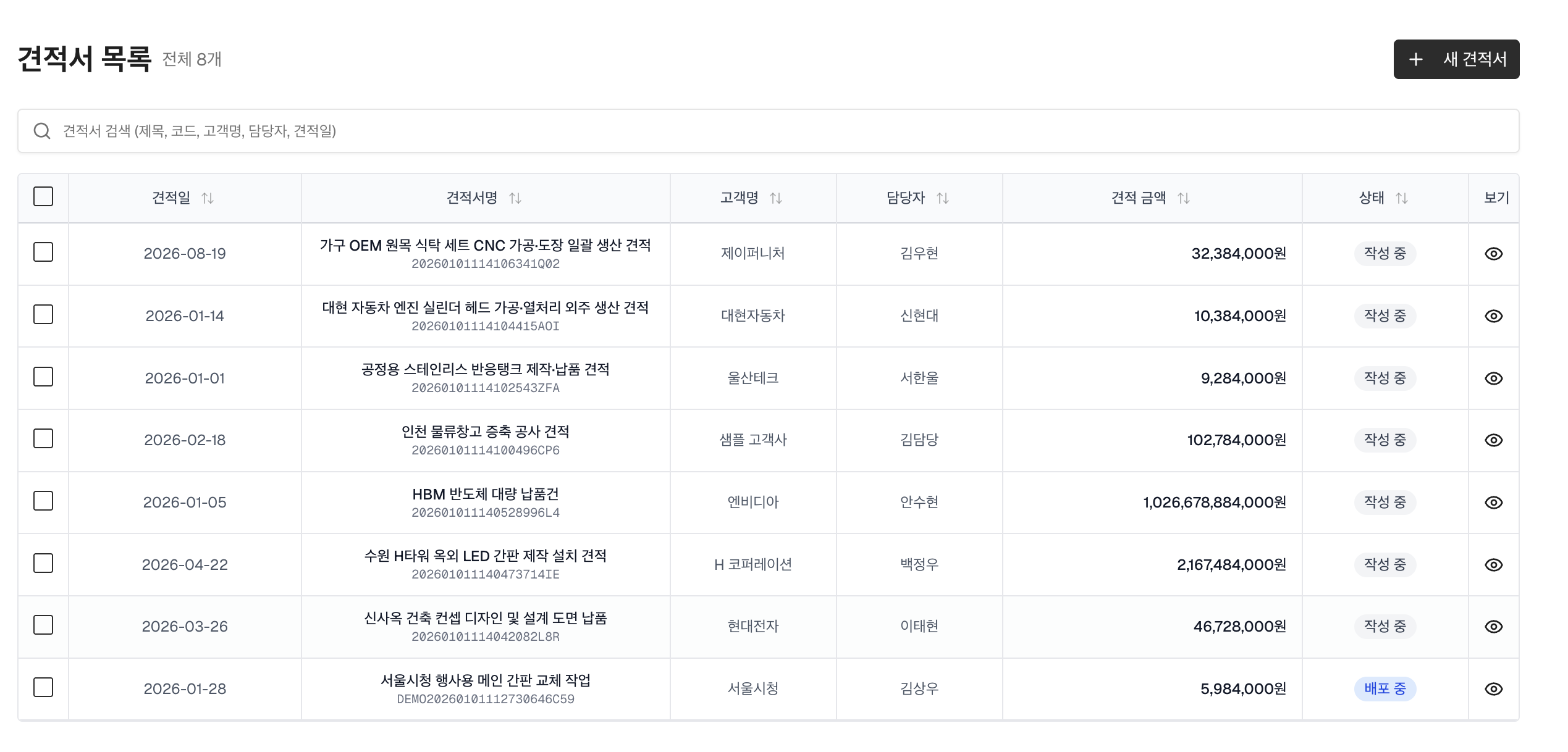 모든 견적서를 한 곳에서 관리하고, 빠르게 검색하고 필터링하세요.